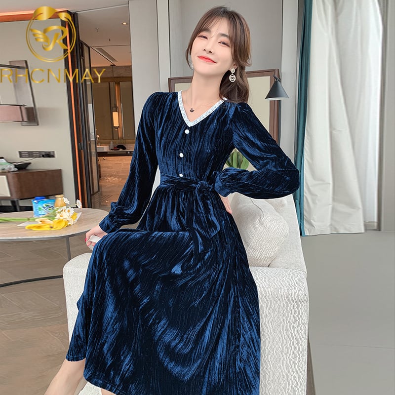 2020冬ワンピースベルベットドレス女性セクシーなVネック長袖ベルトラップスリムドレスVestidos ロング ウィンター 冬物 ハーネス Rhc27100663800