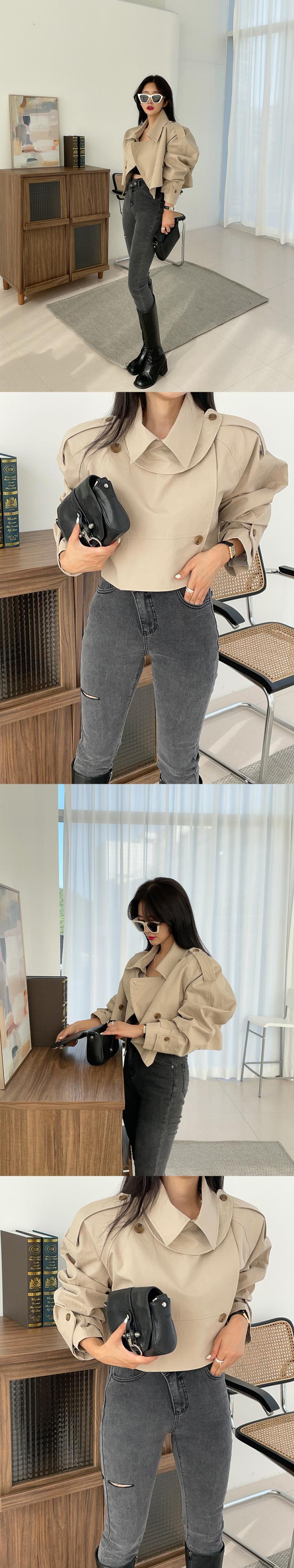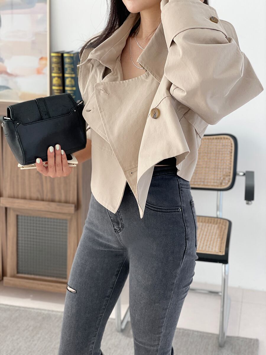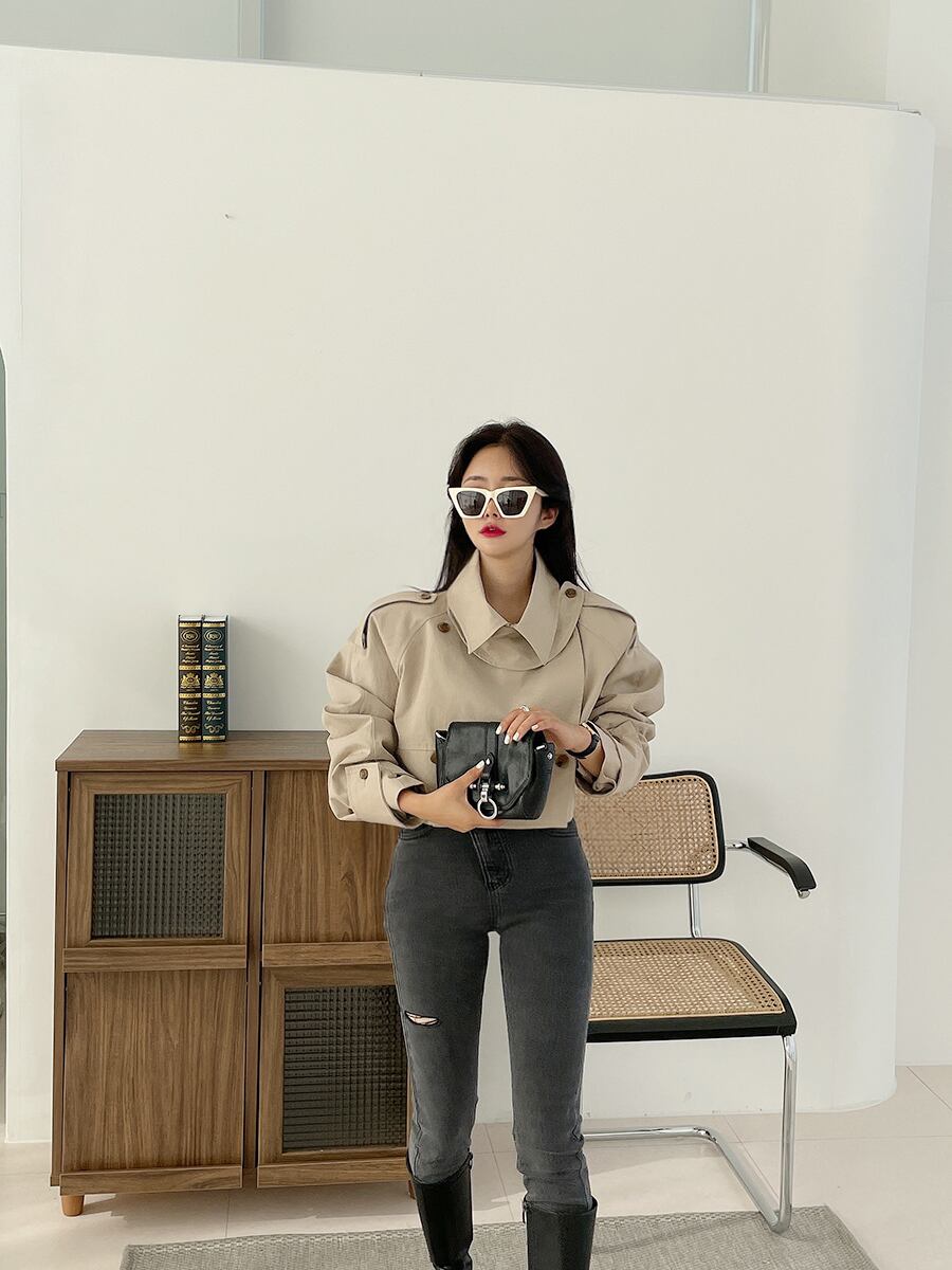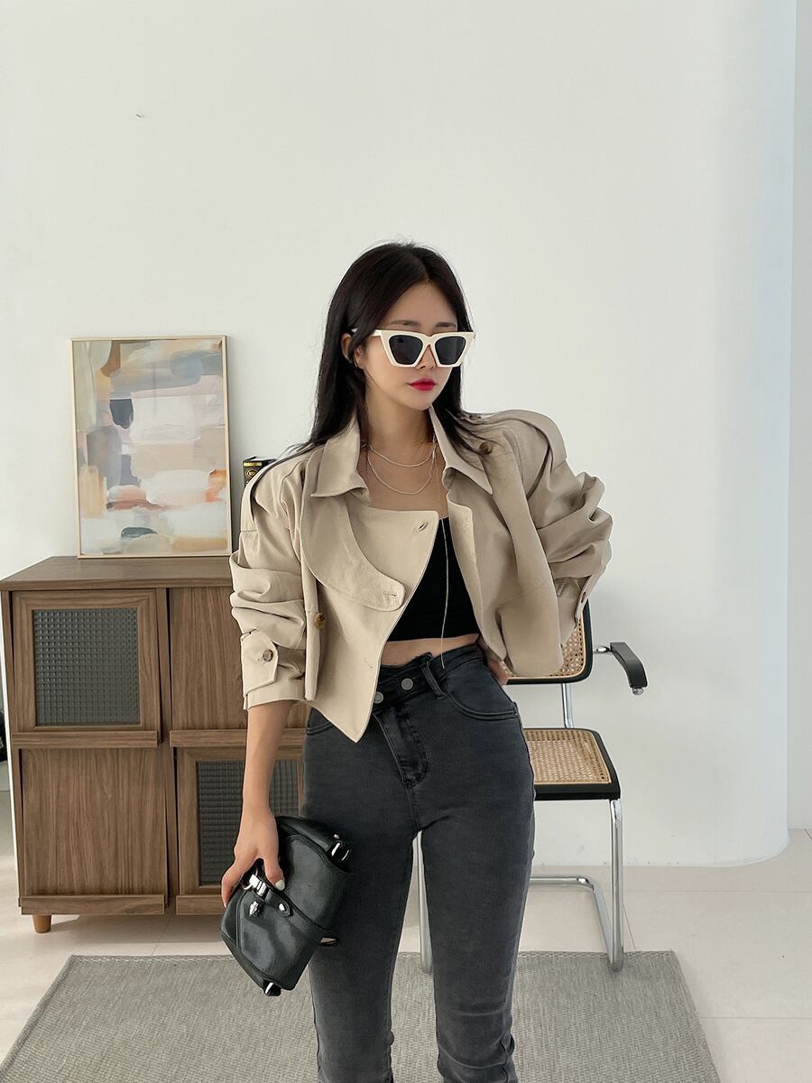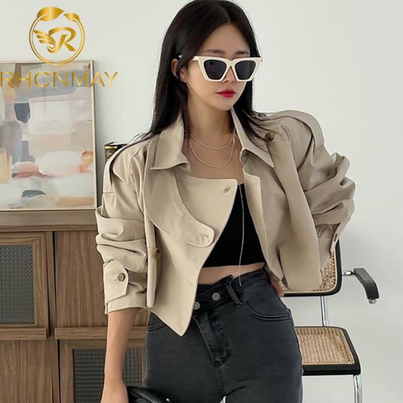女性カーキショートジャケットコート2021秋オーバーコートウインドブレーカールーズアウター オータム 秋物 Rhc85016697101