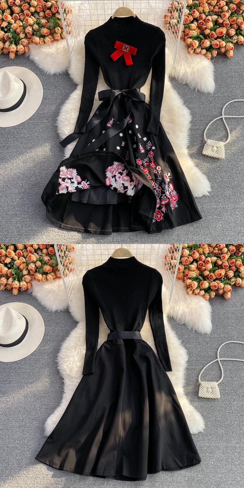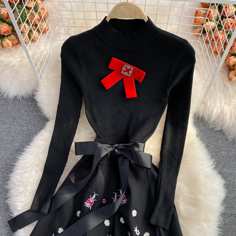 女性秋冬刺繡セーターニットドレスオフィスパーティーローブVestidos 刺繍 オータム 秋物 ウィンター 冬物 会社 学校 通勤や通学にも Rhc25541570466