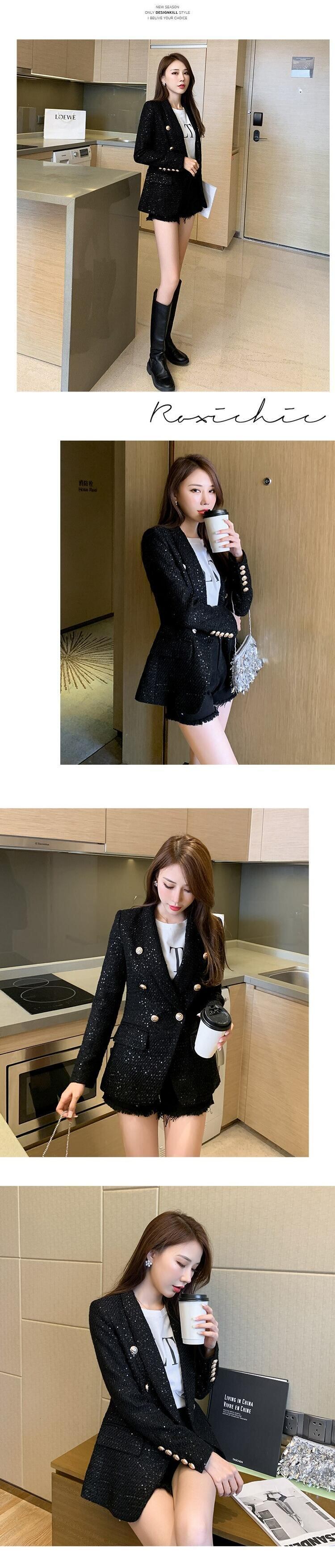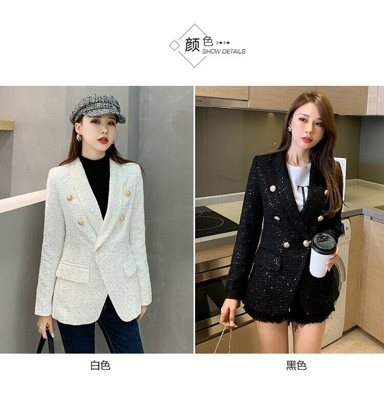 ランウェイ2020コートレディースダブルブレストメタルボタン長袖ノッチカラージャケットウールブレンドツイードコート ロング Rhc90877295019