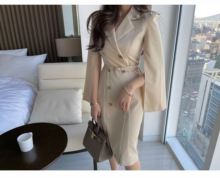 女性のドレス2021夏のシックな気質ラペルダブルブレストスーツスタイルのスリット時計スリーブベルト付きVestidos サマー 夏物 ハーネス Rhc34063624767