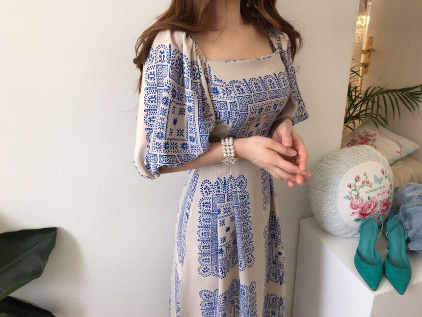 2020年夏の女性のルーズウエストスリムは薄いスクエアカラーのHirカラーマキシドレスでした サマー 夏物 スクウェア Rhc42017597502