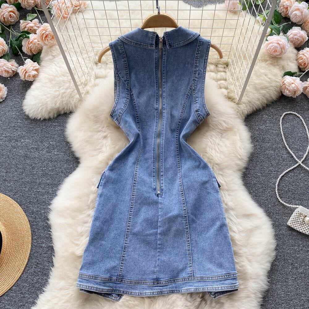 2022年女性用ノースリーブデニムドレス女性夏ミニブルードレスボトムスパーティーショートミニドレス夏服 サマー 夏物 Abe17363206472