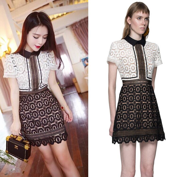 セルフポートレートパーティーレディースドレス2020サマーランウェイブラックホワイトパッチワーク半袖中空アウトミニドレス ショート ハーフスリーブ 夏物 Rhc7015152565