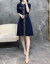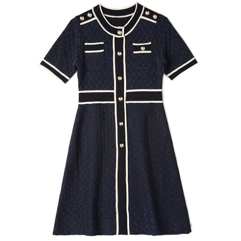 2020ランウェイスプリングスモールフレグランスニットドレスレディーススプライスシングルブレスト長袖セータードレスラウンドカラー ロング 春物 Rhc6567123504