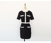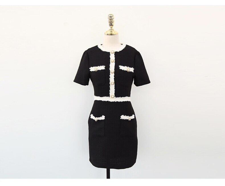 2021年夏スモールフレグランスパッチワークニットワンピース気質レディースウエストスリミングステッチワンピースパールボタン サマー 夏物 真珠 Rhc99047920910