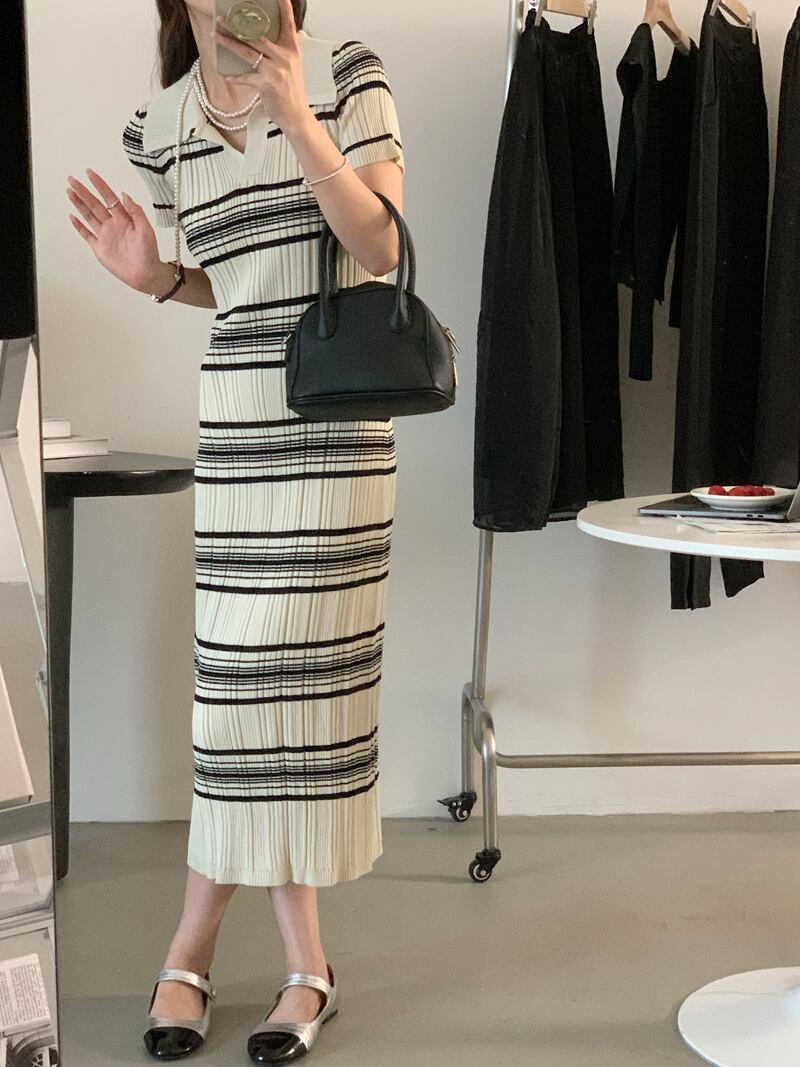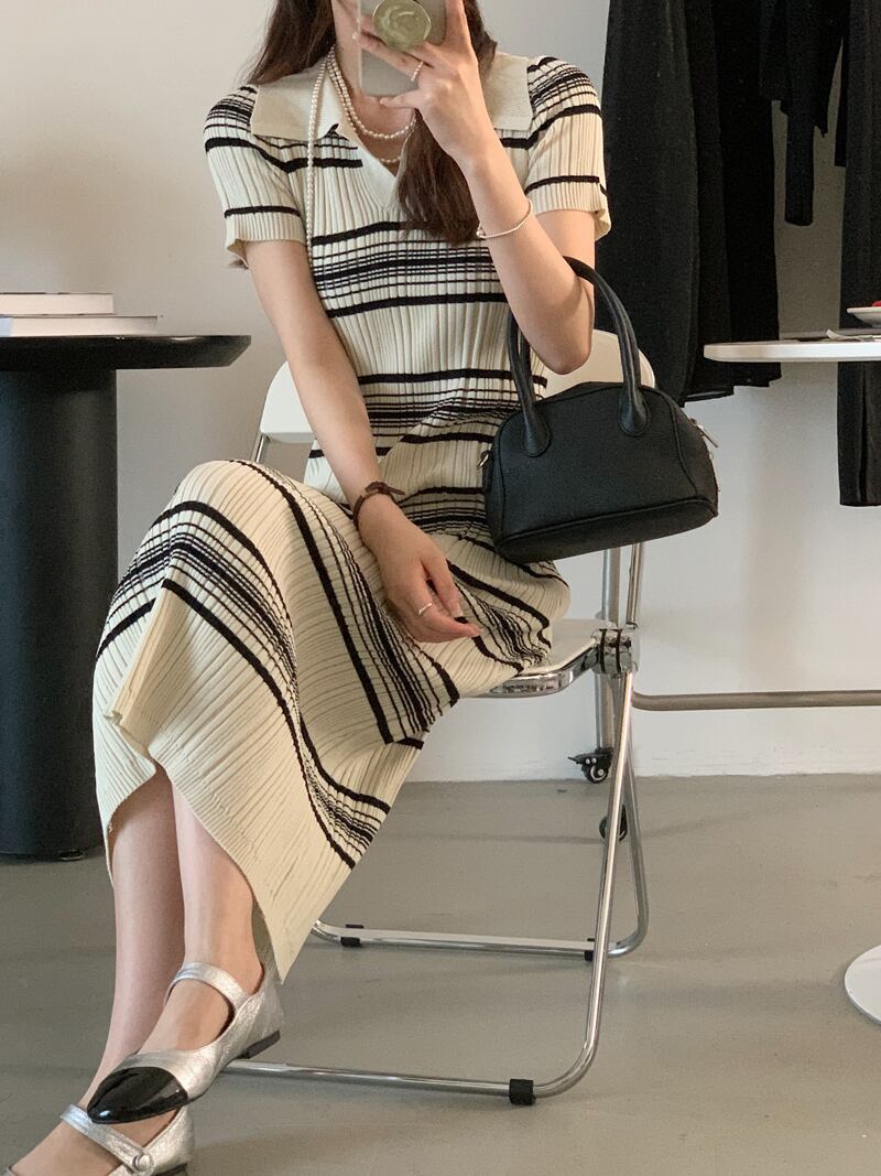 夏のニットの女性の縞模様のドレスは首を下げますノースリーブの女性ミディドレス2022ニットVestidos サマー 夏物 ストライプ Rhc39322228766