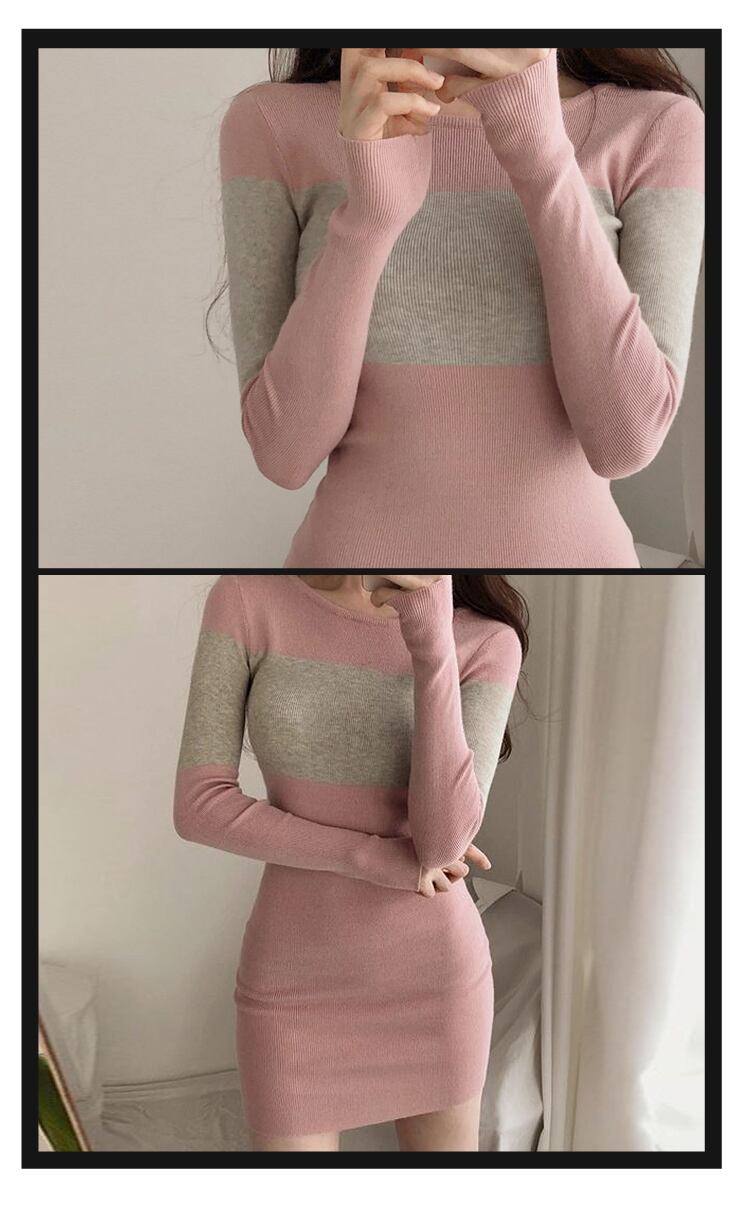 2020Oネックニットドレス女性秋タイトフィッティングスリムセータードレス冬ニットプルオーバードレス オータム 秋物 ウィンター 冬物 Rhc81051888699