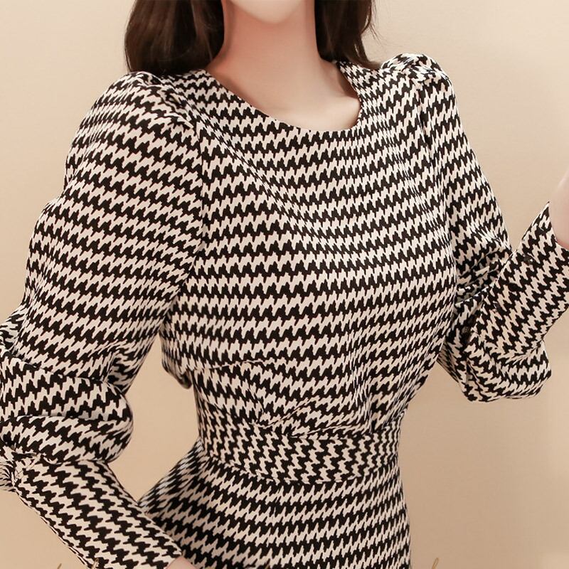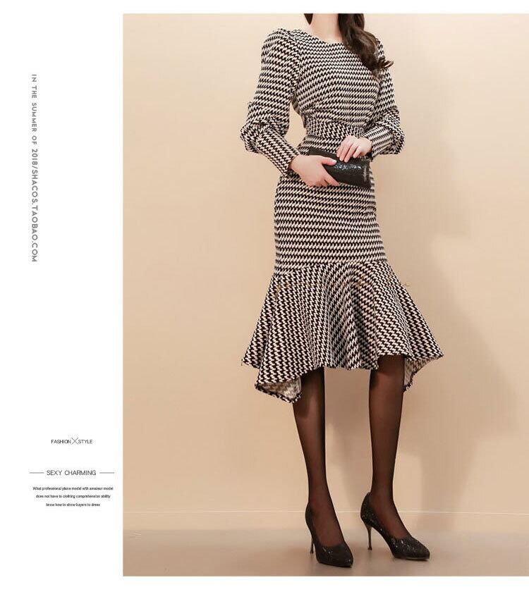 2020年春の女性ウェーブストライプオフィスワークスーツO-nevkブラウストップスとボディコンミッドカーフマーメイドスカートツーピースセット スプリング 春物 会社 学校 通勤や通学にも Rhc62182508267