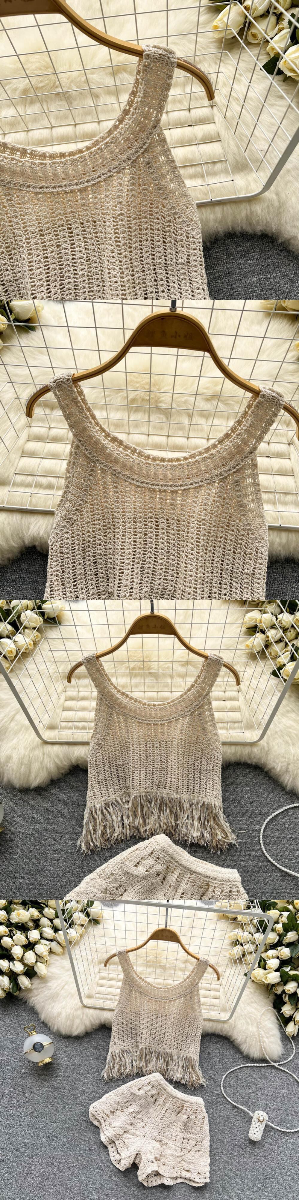2022年夏休みtelCamisoleトップ+ホットショーツ女性2pcsビーチスーツバックレススリングトップショーツセット サマー 夏物 ブルマー Abe5630458389