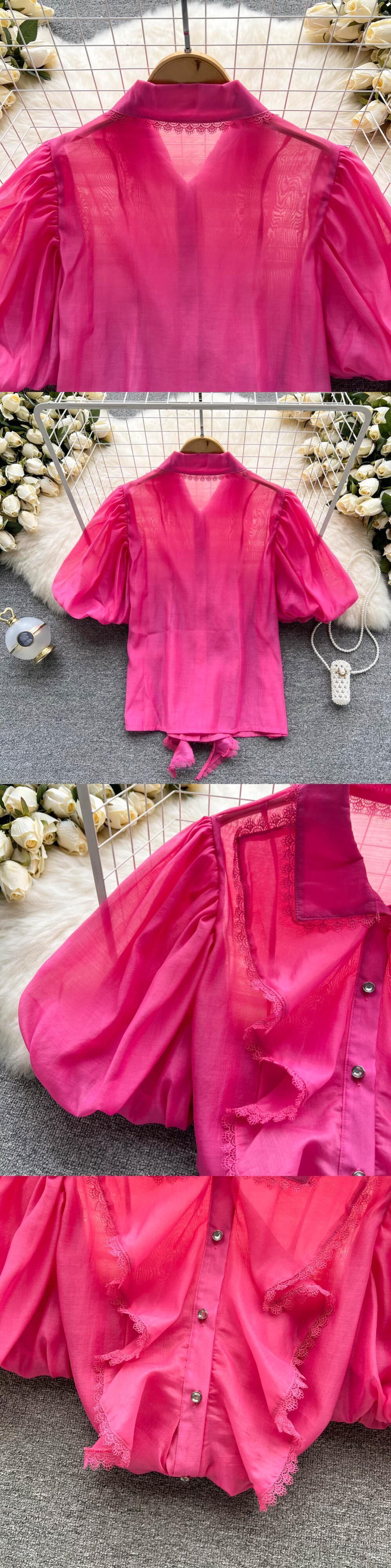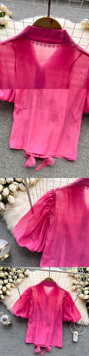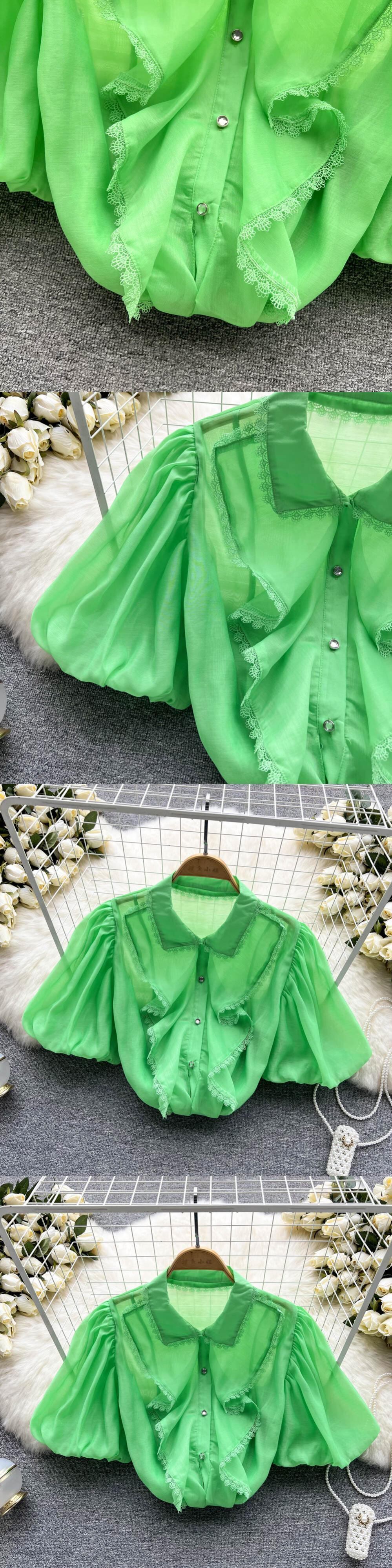 パフスリーブブラウス女性ボタンアップシャツ原宿服夏シースルー かわいい サマー 夏物 Abe28243137088