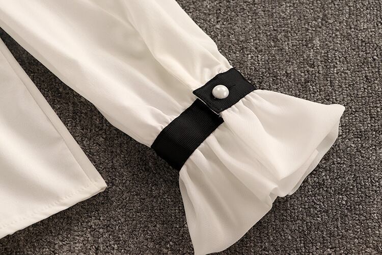 シフォンブラウス2020年春女性フリルトップス無地オフィスレディ蝶ネクタイシャツフレアスリーブ婦人服 リボン ラッフル スプリング 春物 ソリッドカラー 会社 学校 通勤や通学にも Rhc18888431628