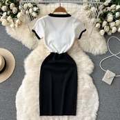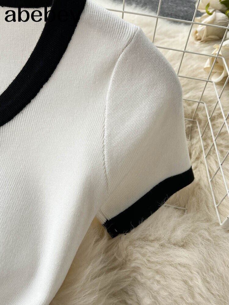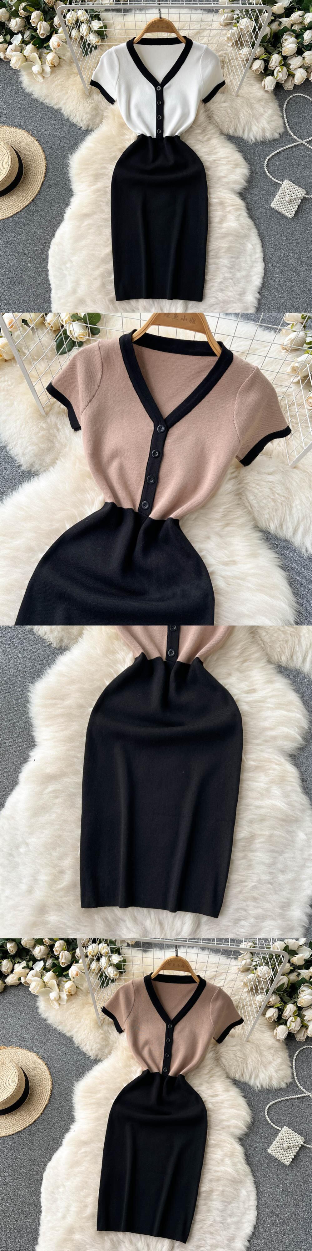 女性サマーニットドレス2022Vネックストリートウェアスリムミディショートサンドレス伸縮性ウエストセクシーボディコンドレス エラスティック 夏物 Abe9814896461