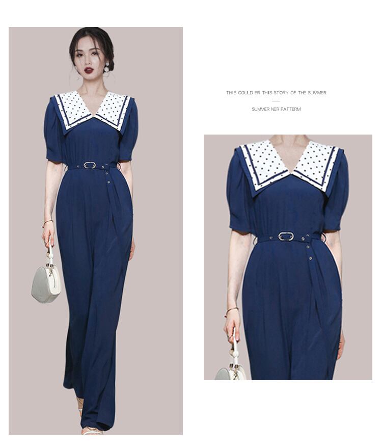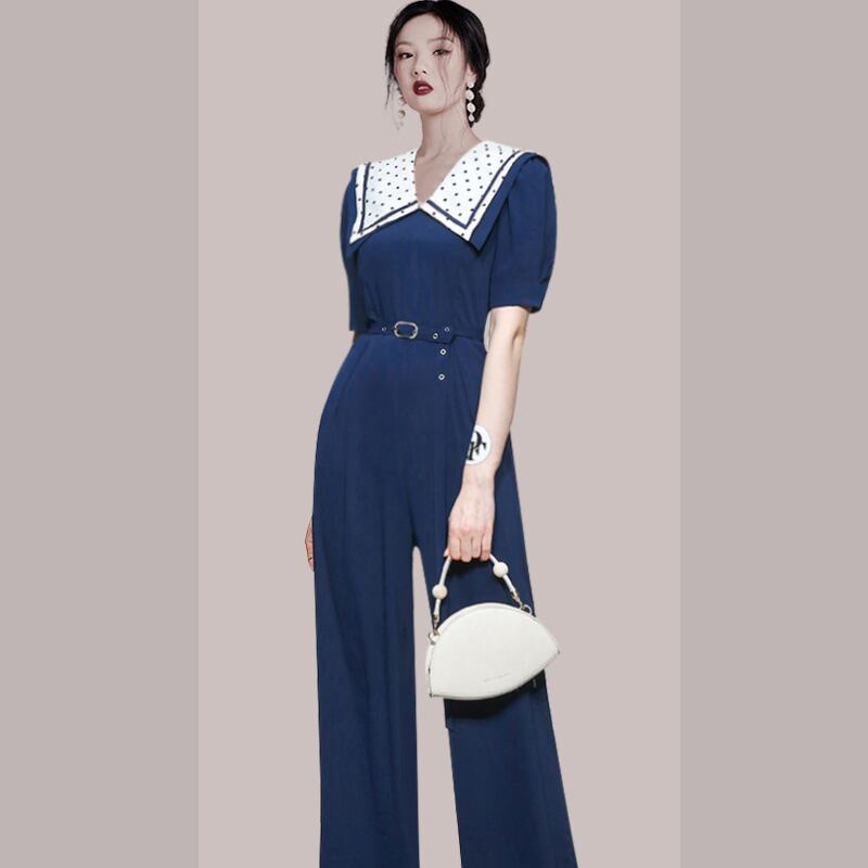2021年サマーウエストストレートドールカラージャンプスーツシフォンブルーレディースロンパースワークシャムパンツ 夏物 Rhc83080049483