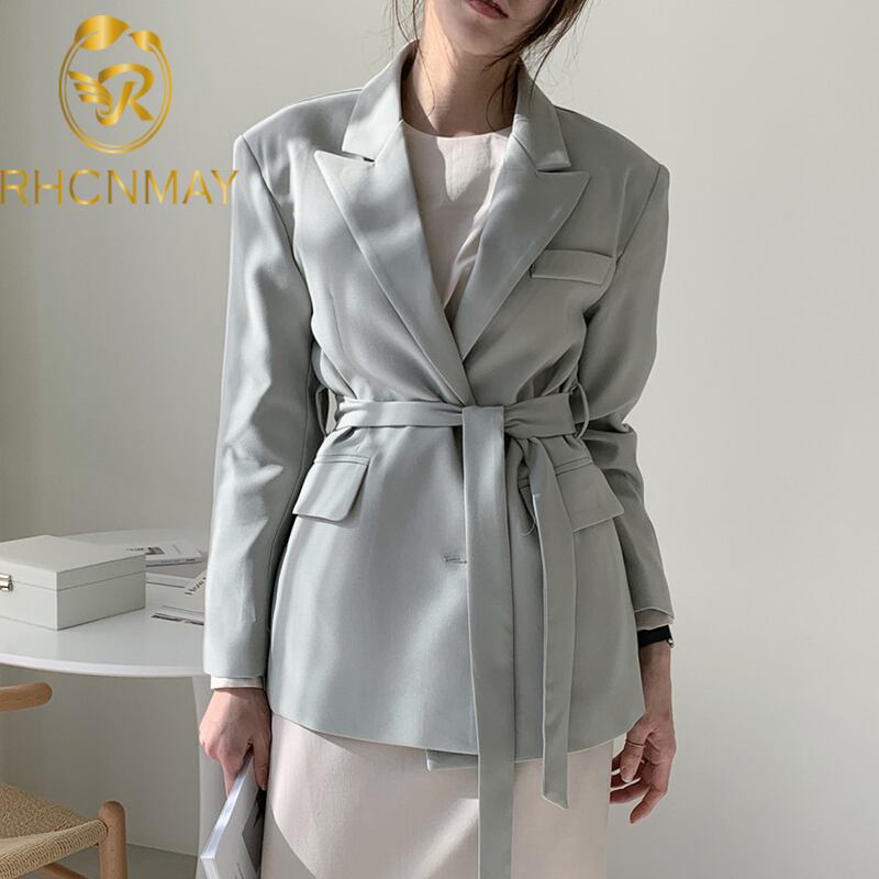 2020年秋のソリッドブレザー女性作業着マルブレザールーズOLスーツカラージャケットベルト付き オータム 秋物 ハーネス ソリッドカラー Rhc51235021820
