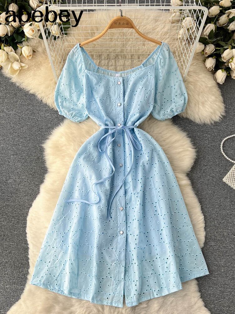 ヴィンゲート刺繡スクエアカラーレースドレス女性パフスリーブフローラルシックなドレスボタン2022年夏 刺繍 サマー 夏物 花柄 スクウェア Abe87746059637
