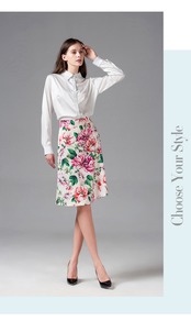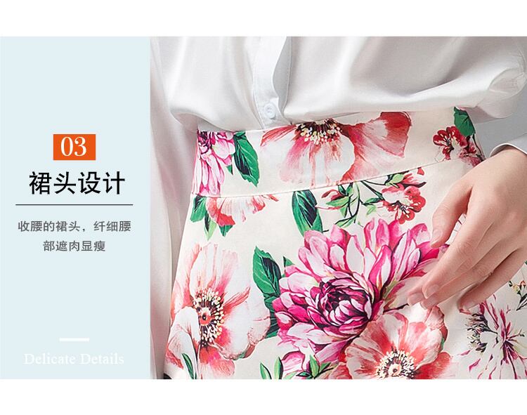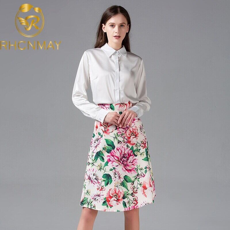 ランウェイサマーホリデーセットスーツレディース長袖ホワイトブラウスシャツ+ファンシーフローラルプリントスカートスーツツーピースセット ロング 夏物 花柄 Rhc35567122508