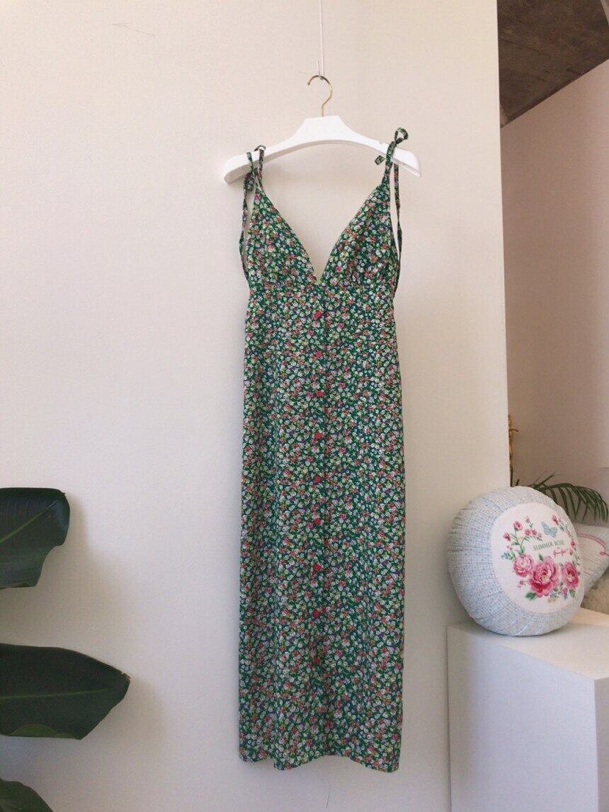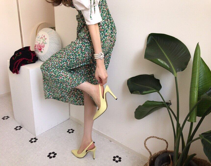 女性2ピースセットスタイルシックOネックパフスリーブシャツシングルブレストフローラルスプリットダンガリードレスレディ 花柄 Rhc8952699107