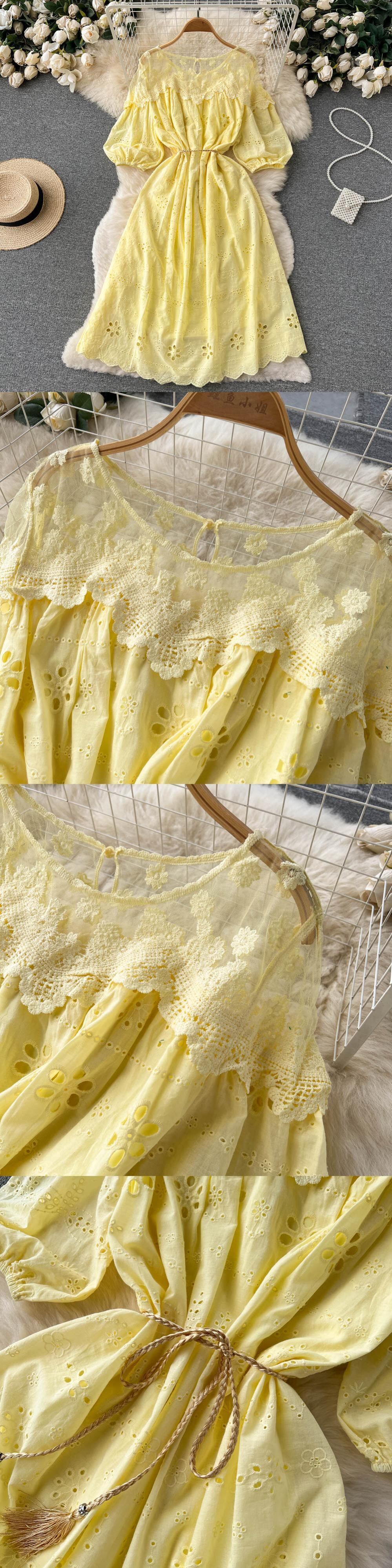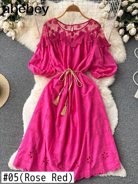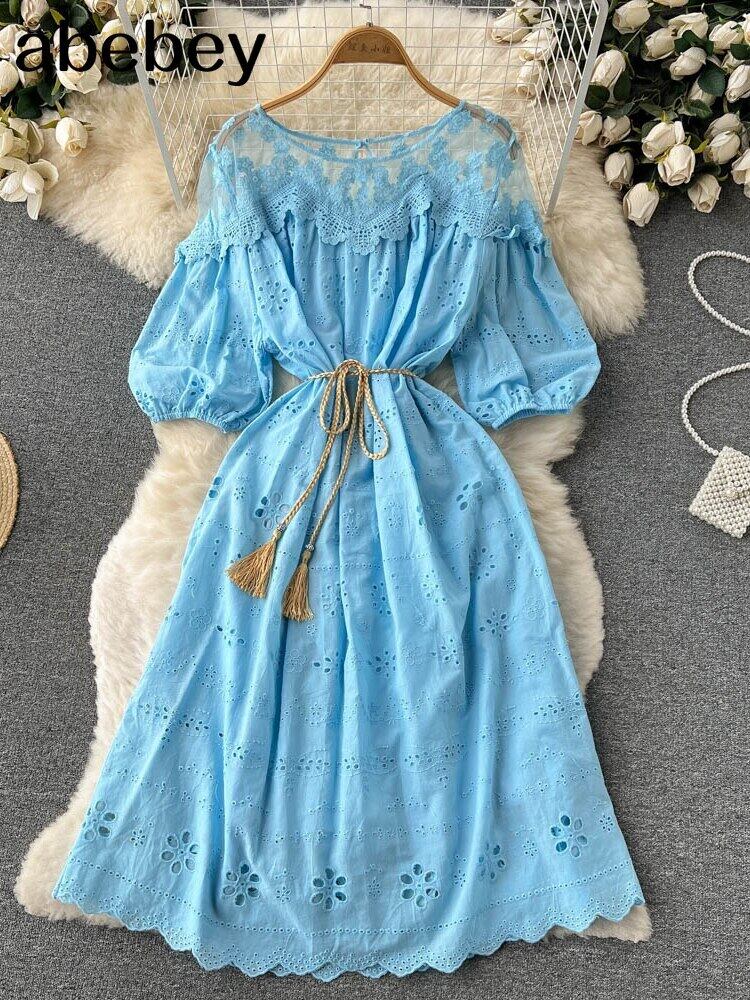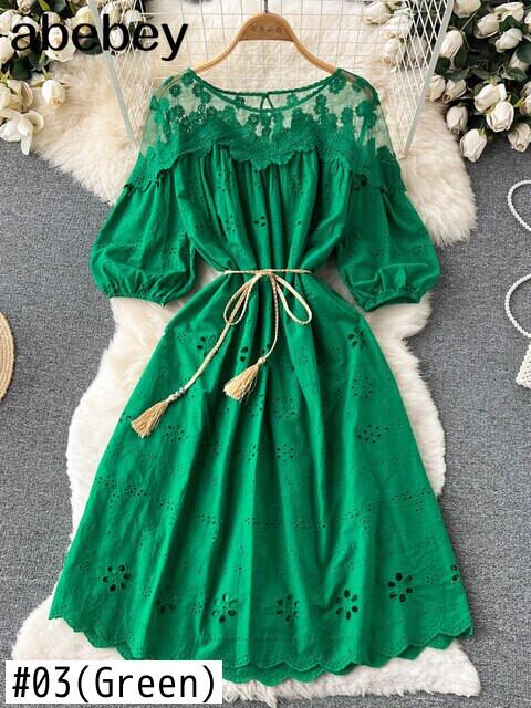 ホワイト/グリーン/ブルー2022サマーレース刺繡ドレス女性半袖ドレスパーティービーチマキシロングドレス ショート ハーフスリーブ 刺繍 夏物 Abe6917962190