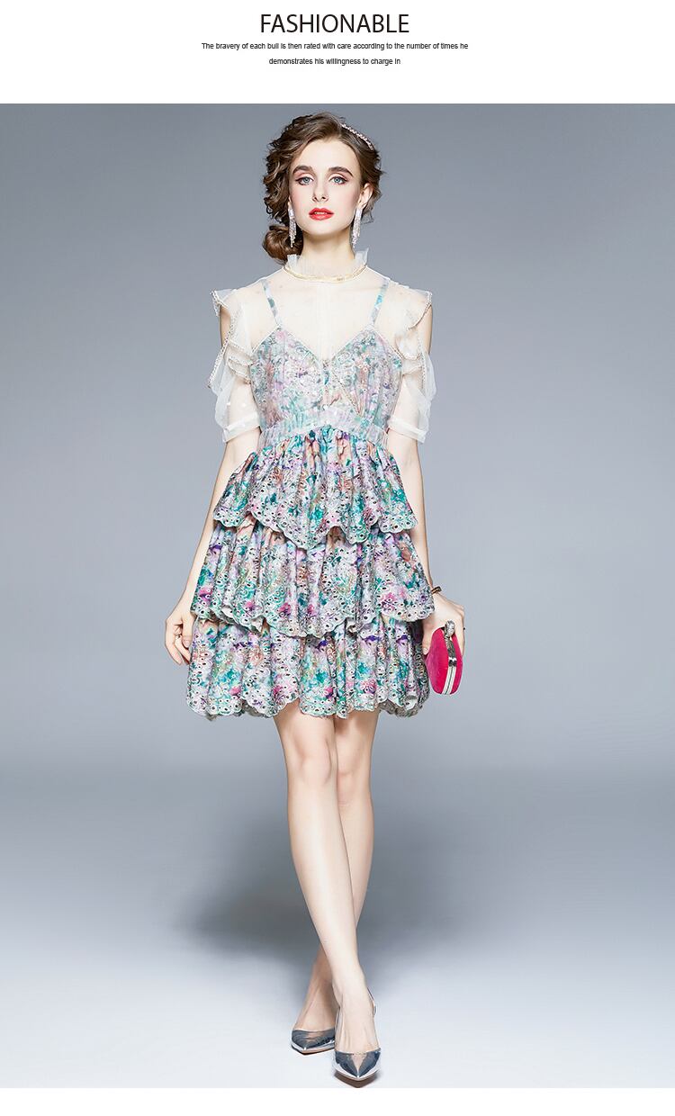 A-Lineメッシュ自由奔放に生きるドレス女性セクシーな誕生日フローラルパーティーレースサマープリント半袖ドレス2021刺繡 ショート ハーフスリーブ 刺繍 夏物 花柄 Aライン Rhc84739835647