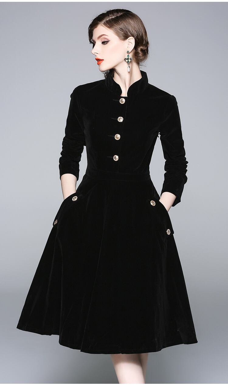 女性秋冬ベルベットドレスフェスタパーティーローブAラインブラックベスティドス オータム 秋物 ウィンター 冬物 Rhc21031793633