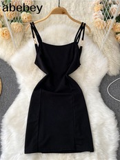 女性セクシーな中空アウト非対称ミディドレス背中の開いた細いストラップドレスVestidos Abe22010758218