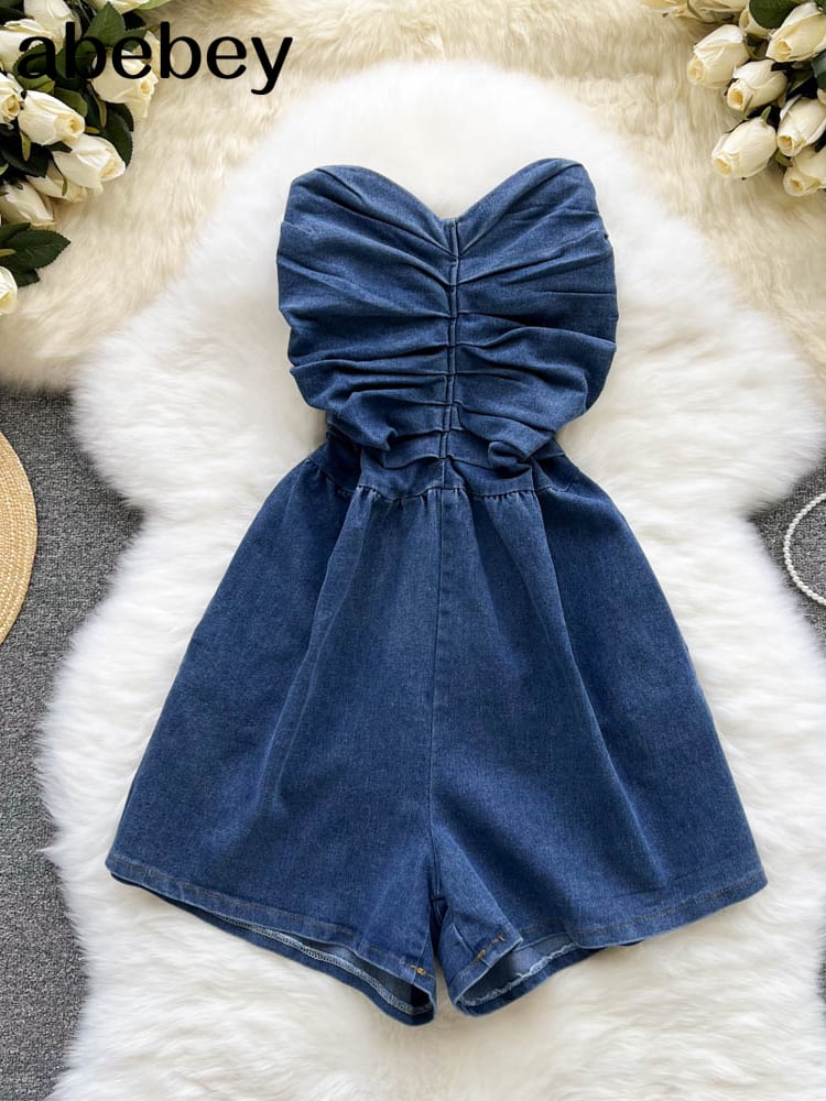 サマーロンパースレディースジーンズジャンプスーツオフショルダー2022ルーズデニムロンパースレディースジャンプスーツワイドレッグデニムオーバーオール 夏物 ワイドパンツ Abe18329700336