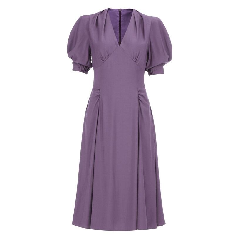 2020ウィメンズサマーオフィスレディスリムウエストドレスパープルセクシーVネックレディースベーシックビジネスパフスリーブドレス 夏物 会社 学校 通勤や通学にも Rhc81949222974