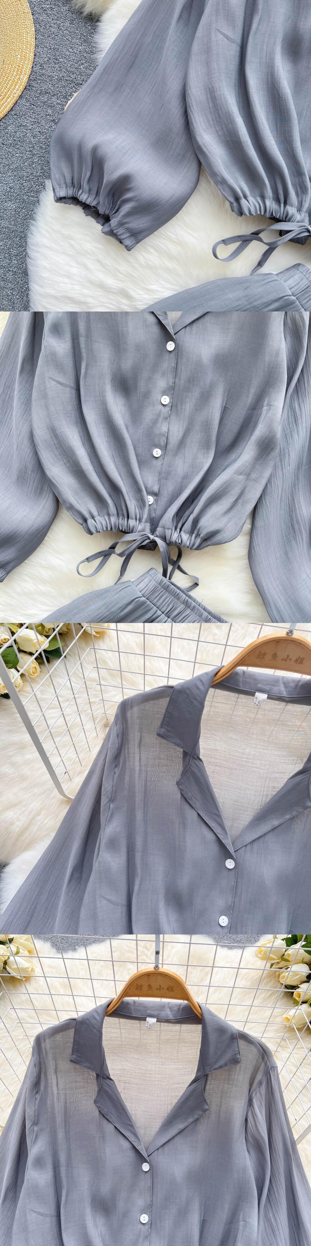 夏の滑走路ツーピース服女性長袖ソリッドブラウスとショーツスーツの衣装 ロング サマー 夏物 ブルマー ソリッドカラー Abe45005888510
