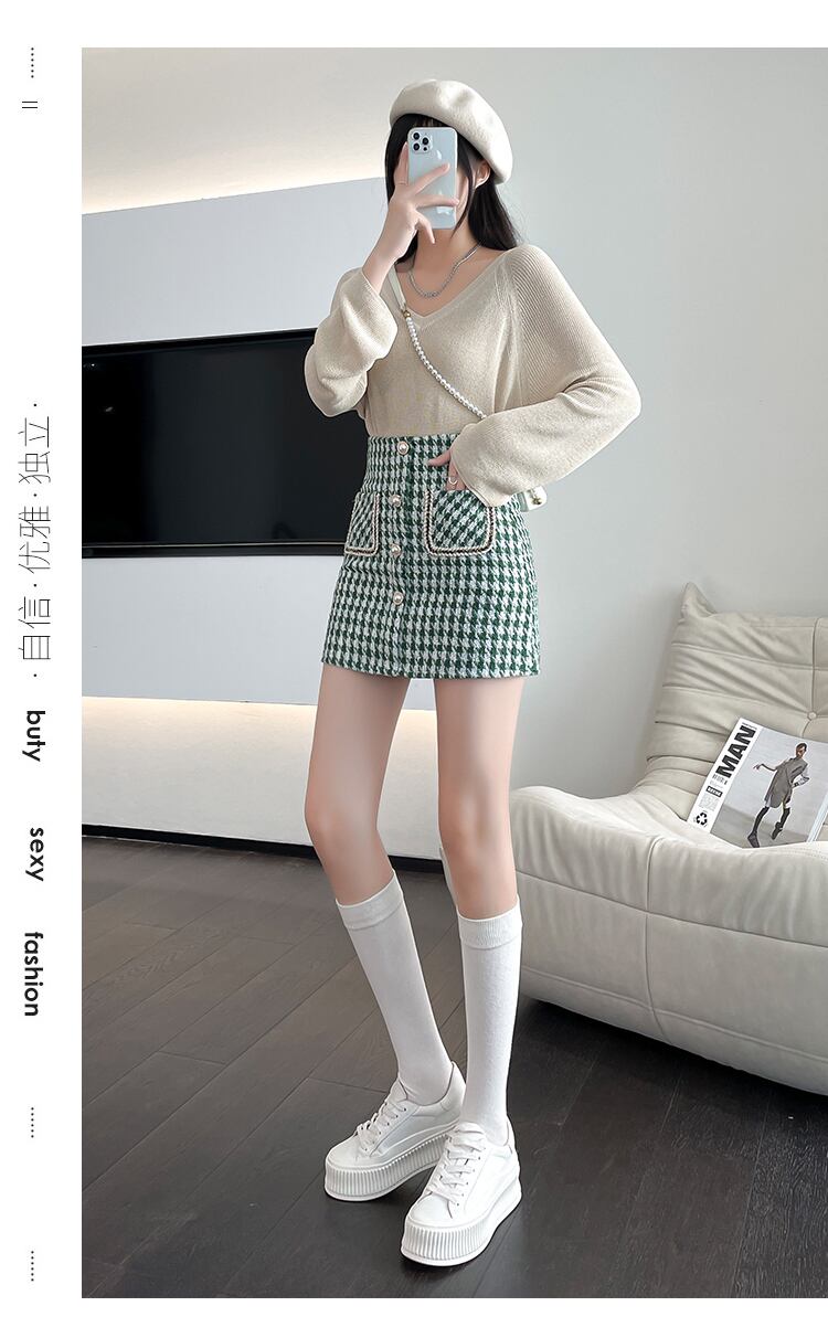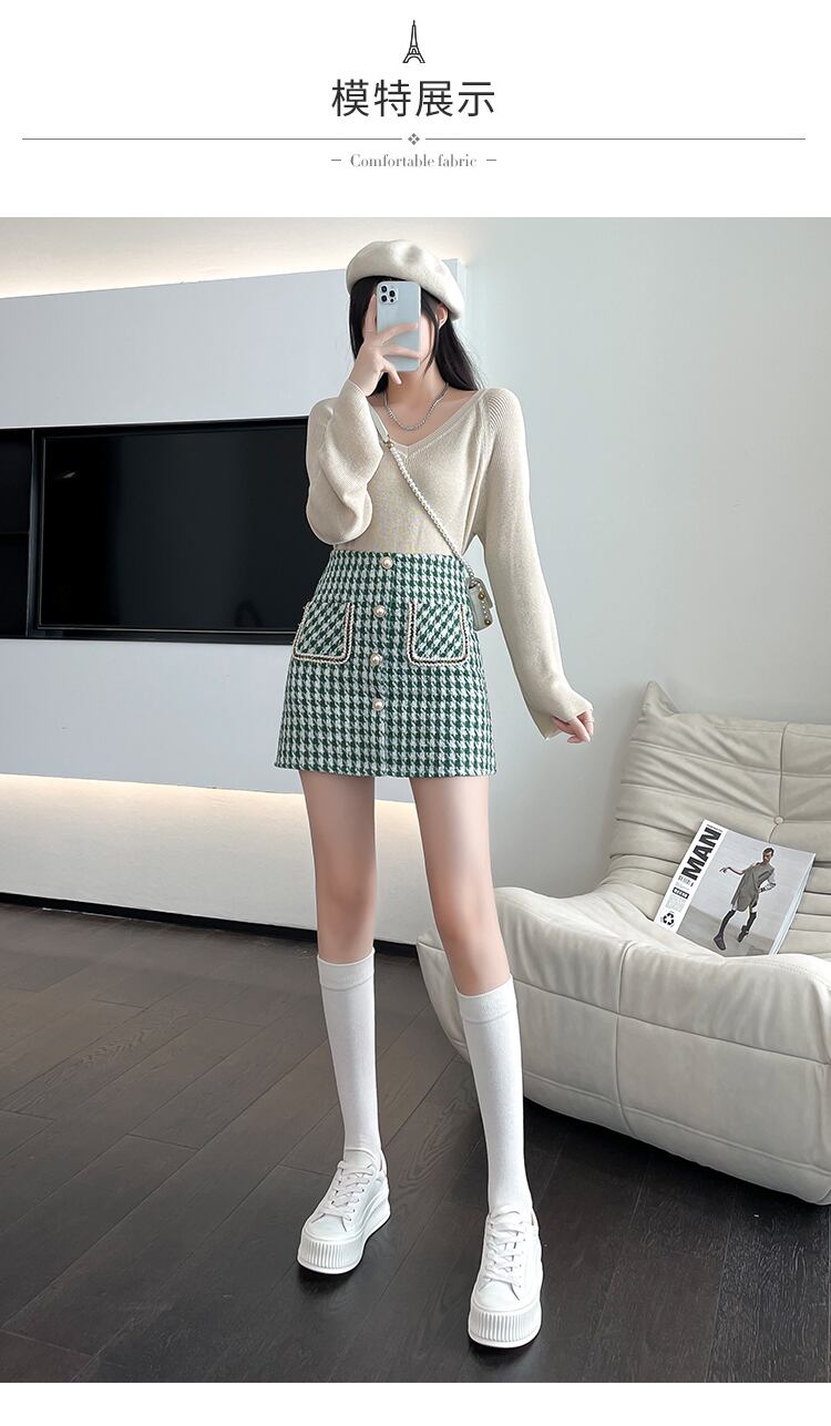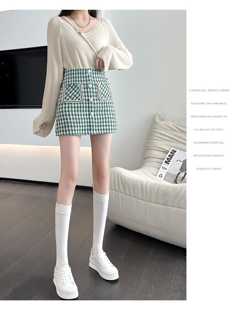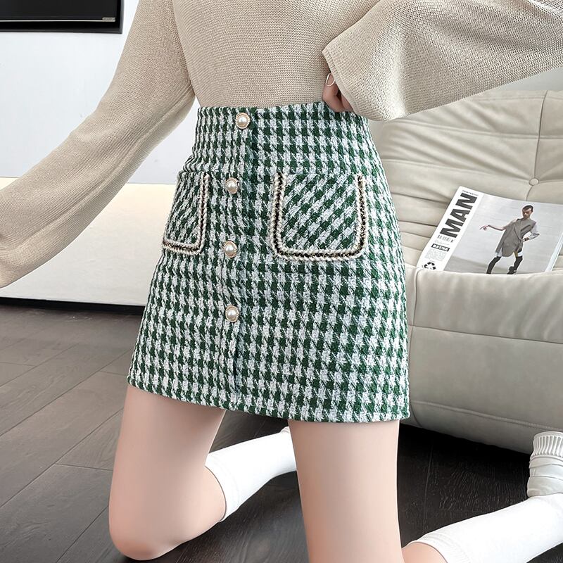 2021年女性チェック柄ツイードスカート春秋ウエストスリムAラインシングルブレストミニスカートホワイトブラック スプリング 春物 オータム 秋物 Rhc54394227250