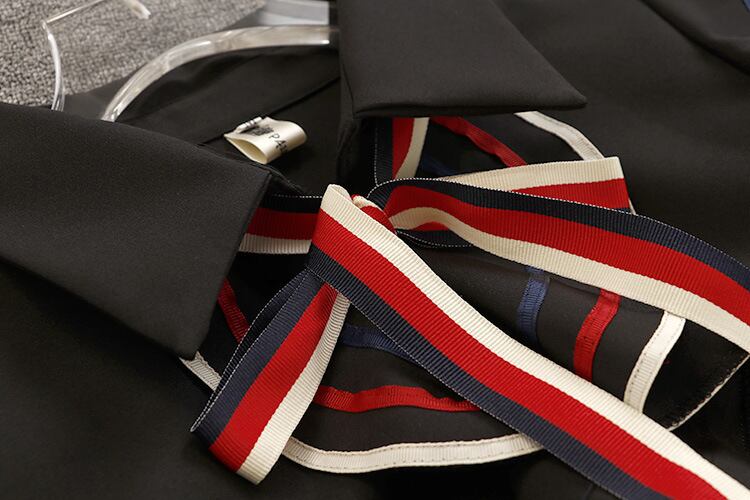 2020年夏の滑走路の女性レトロバタフライノースリーブ蝶ネクタイ襟フリル織りストライプジッパーアップミニドレス リボン ラッフル サマー 夏物 Rhc66076848604
