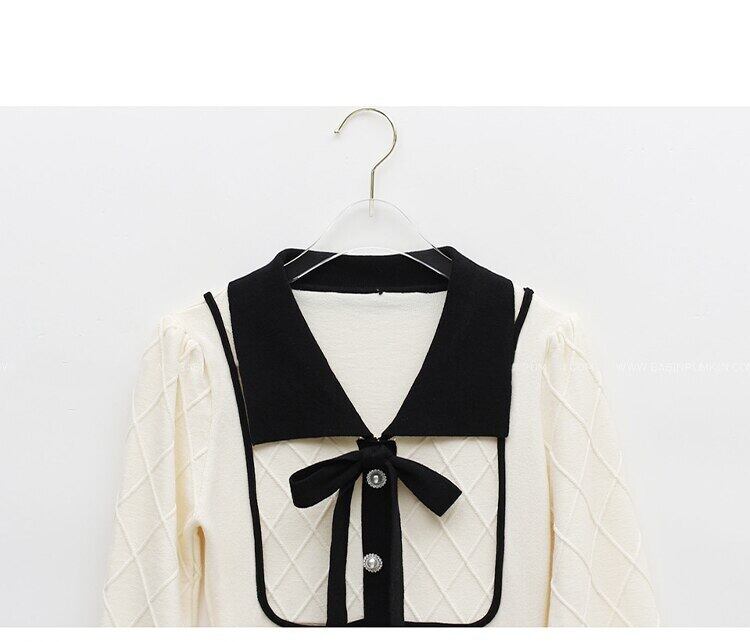 2020冬バージョンボウネックスリム伸縮性長袖ウールセーターシングルブレストグレース気質ジャージードレス ロング リボン エラスティック ウィンター 冬物 Rhc27548155519