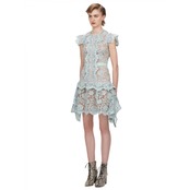 2020サマーブルーレースイレギュラーフリルミニパーティードレスレディースランウェイOネック半袖フローラルホローアウトスリムドレス ショート ハーフスリーブ ラッフル 夏物 花柄 Rhc40959627434