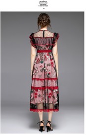 滑走路サマーホリデーロングドレス高級女性フリルメッシュパッチワークレース刺繡パーティードレスフローラルセクシーVestidos ラッフル 刺繍 夏物 花柄 Rhc72820591727