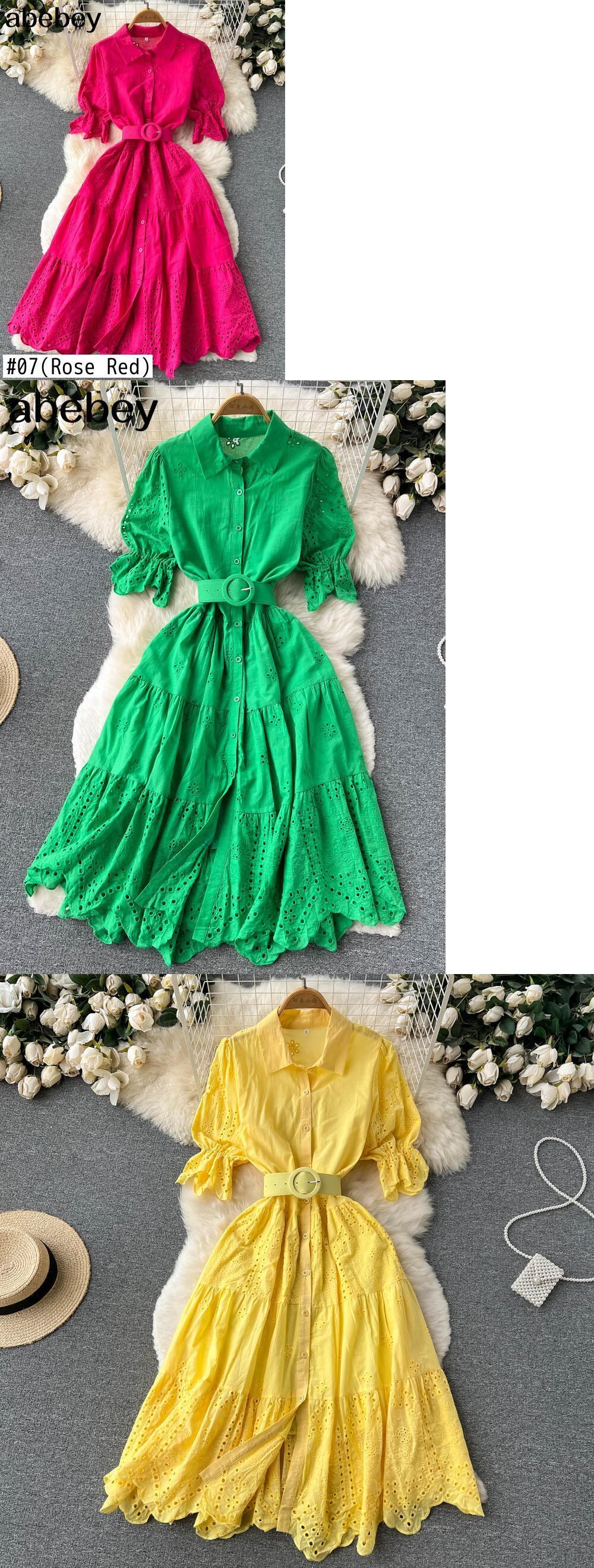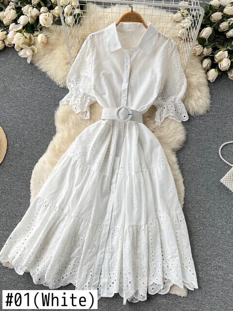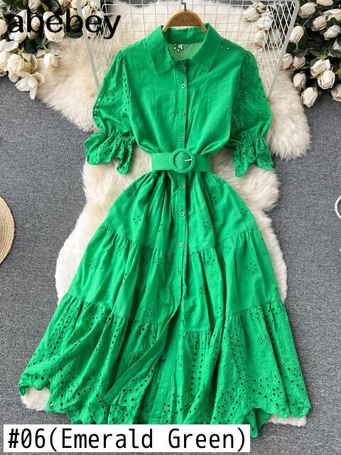 ホワイト/グリーン/ブルー2022サマーレース刺繡ドレス女性半袖ドレスパーティービーチマキシロングドレス ショート ハーフスリーブ 刺繍 夏物 Abe96744112528