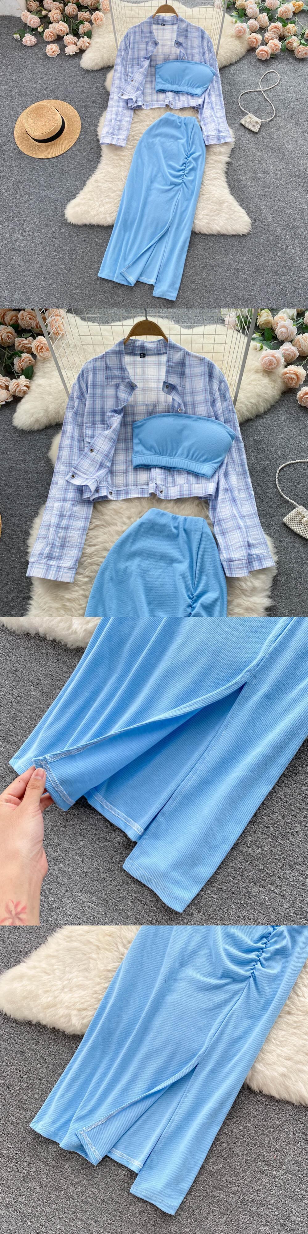 セクシーな3つのスリーピースセットコートとロングスカート+ストラップレスキャミクラブボディコンドレスセットバディ衣装フェスティバルの衣装 Abe19939745445