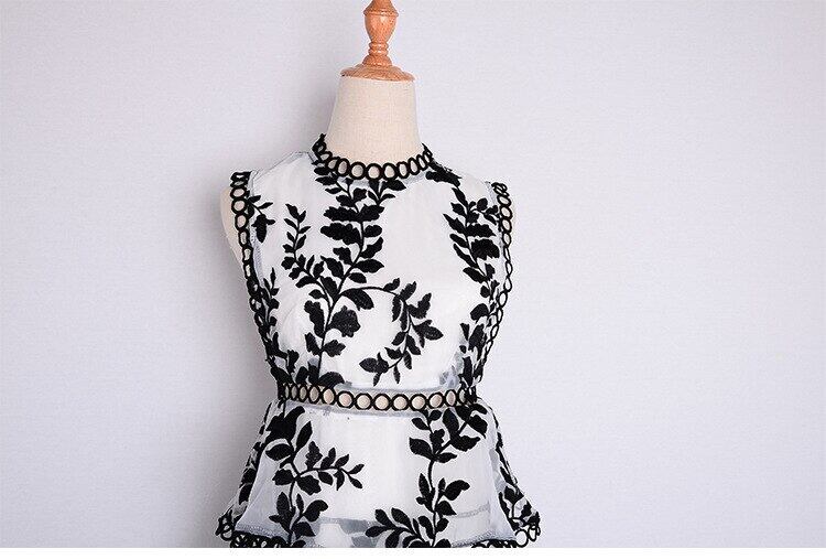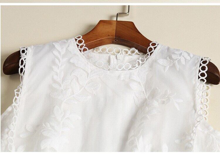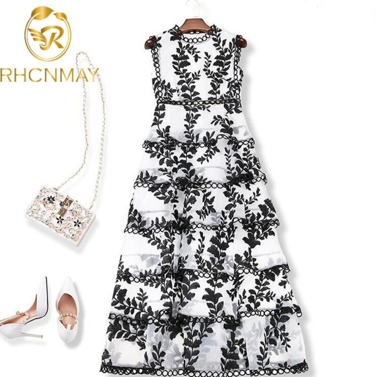 滑走路刺繍ノースリーブパーティードレス女性コットンウエスト女性ケーキドレスブラックホワイトVestidosマキシ Rhc82212531083