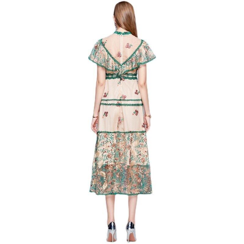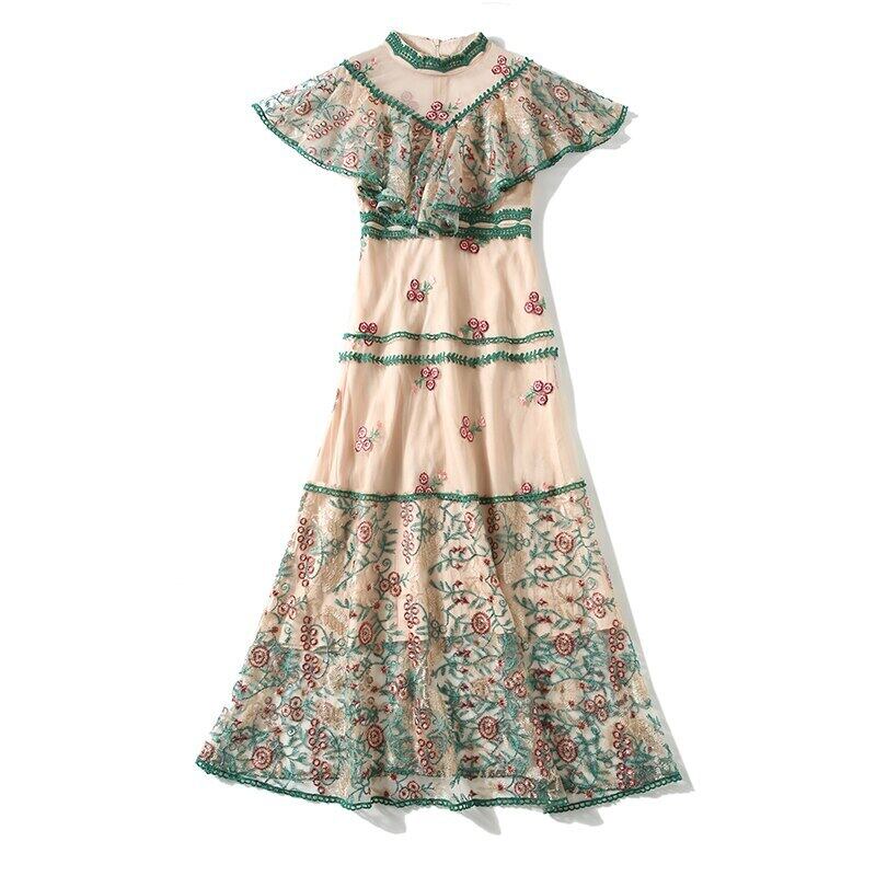 2021年夏の女性Aラインドレス半袖フリル刺繡パーティーミディドレスvestidos ショート ハーフスリーブ ラッフル 刺繍 サマー 夏物 Rhc92177912572
