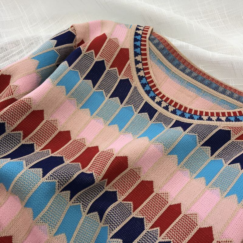 サマードレス女性スリムミニドレス幾何学的半袖ニットドレスパーティードレス女性ドレス ショート ハーフスリーブ 夏物 Rhc76523030581