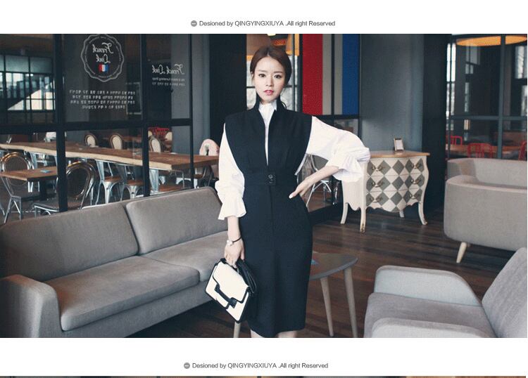 女性2ピースセットドレス2020サマーホワイトフリルスタンドカラーブラウストップ+グレーノースリーブノッチカラーペンシルスカートセット ラッフル 夏物 Rhc67657703741