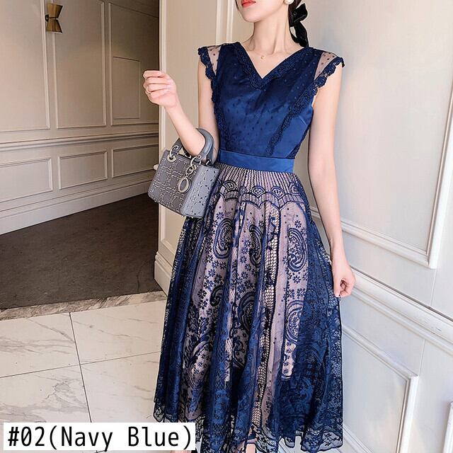 夏のノースリーブパッチワークレースドレス2021夏の滑走路の女性セクシーなVネック刺繡花ミディパーティードレス服 刺繍 サマー 夏物 花柄 Rhc93762656508