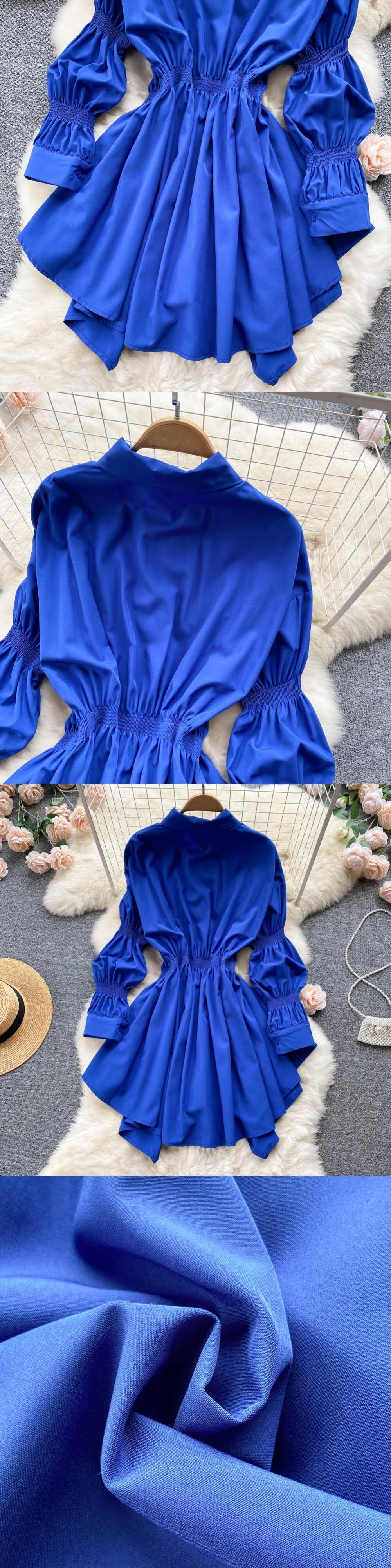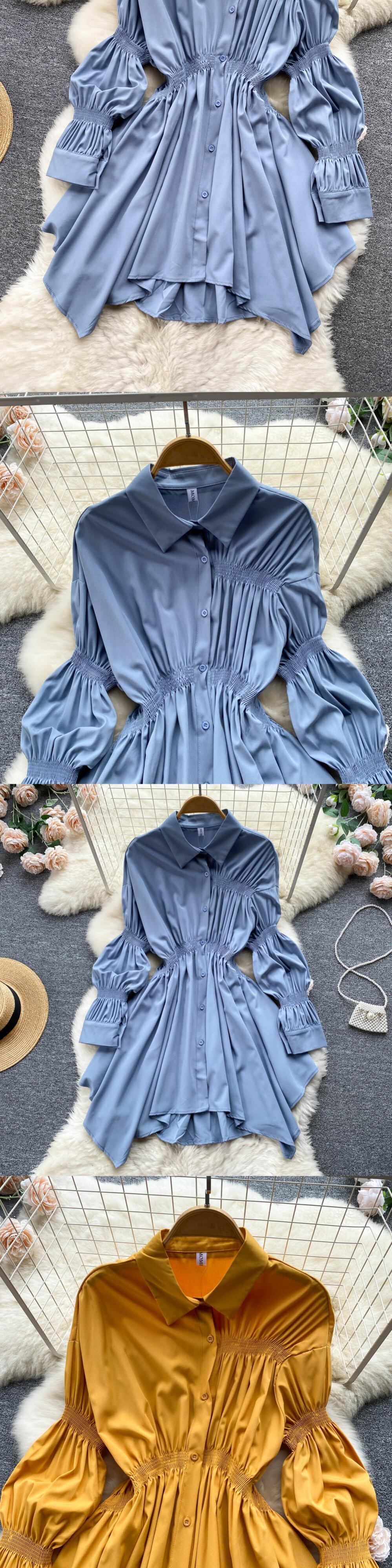 非対称長袖シャツドレス女性の2022年秋スタイル気質ラペルシングルブレストオールマッチドレス ロング オータム 秋物 Abe58894747050