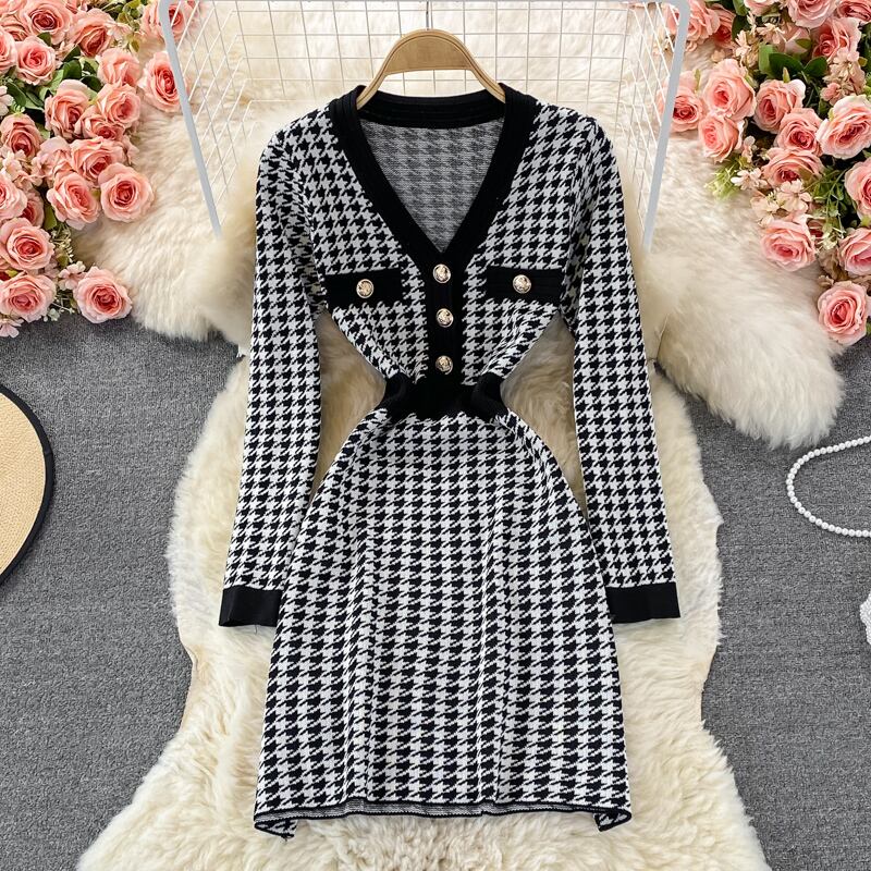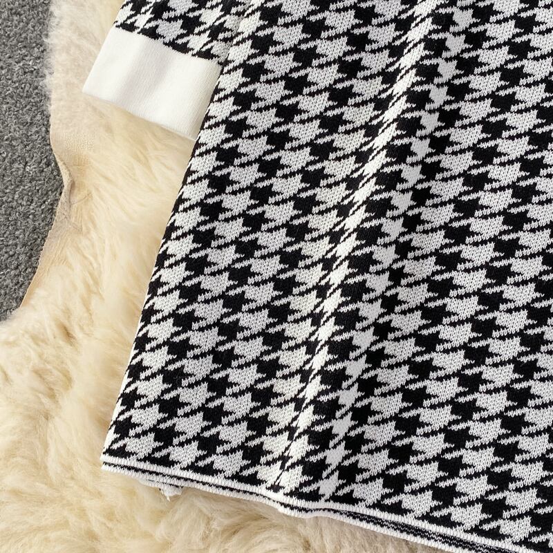 2021年秋冬女性カラーホワイト幾何学的なセクシーなシースドレス長袖ボタンフロントニットセーターウールドレスブラック ロング オータム 秋物 ウィンター 冬物 Rhc19391261449