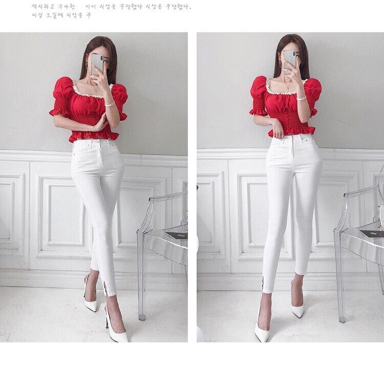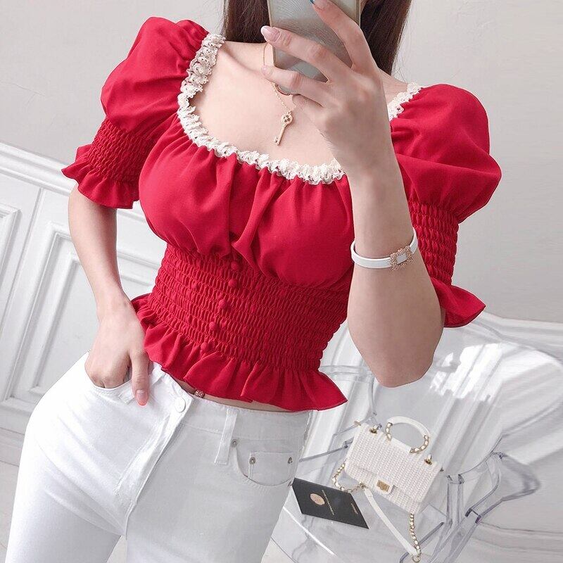 2020サマースクエアカラーショートパフスリーブブラウスヒットカラーオフィスシャツ 夏物 スクウェア 会社 学校 通勤や通学にも Rhc32308686683