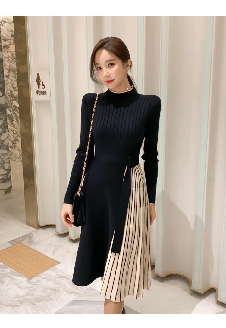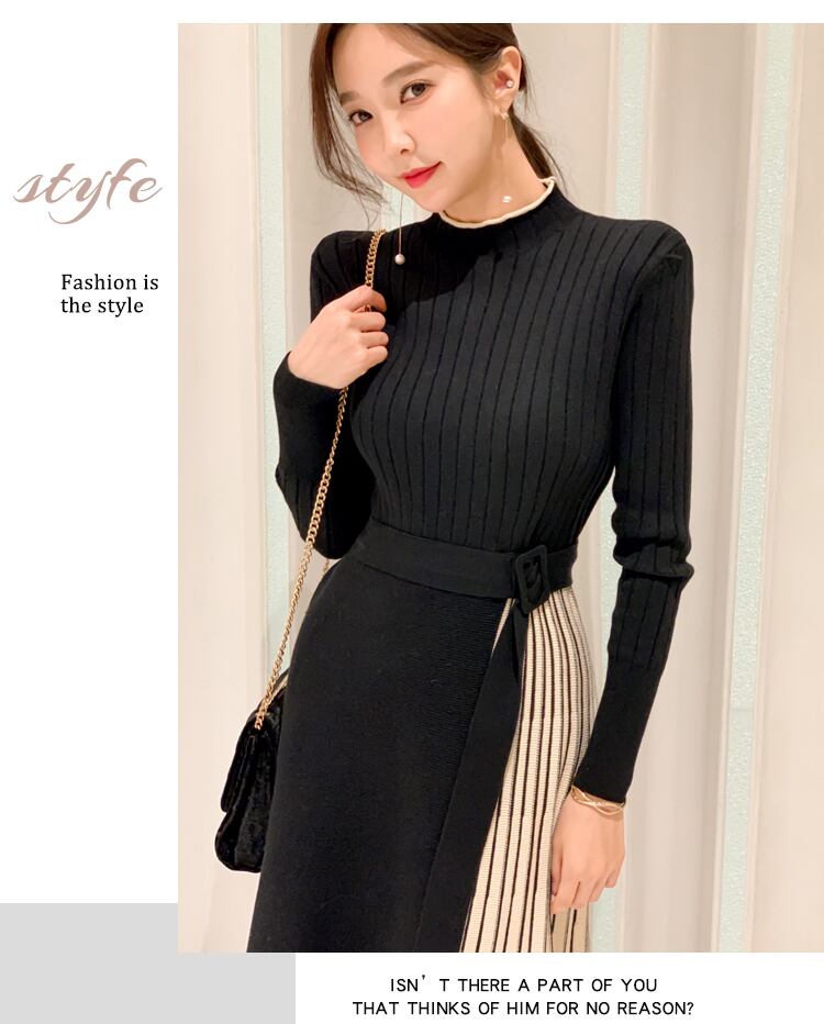 2020冬の伸縮性ニットドレス女性カラーマッチングレースアップセータードレススリムワークオフィスVestidos エラスティック ウィンター 冬物 会社 学校 通勤や通学にも Rhc79974776290