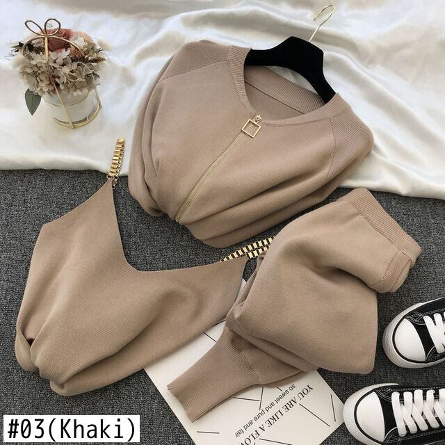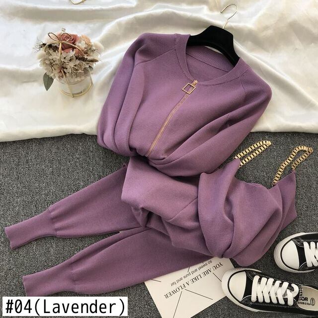 女性ジッパーニットカーディガンセーター+パンツセット+ベスト女性ジャンパーパンツ2PCSの衣装 Rhc3357901607