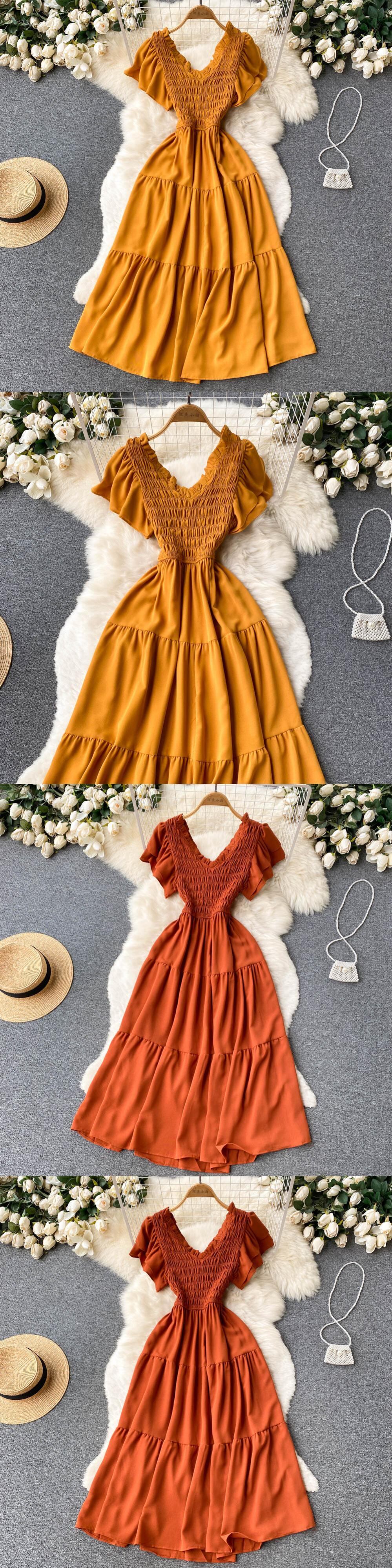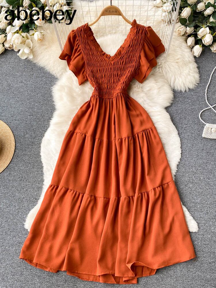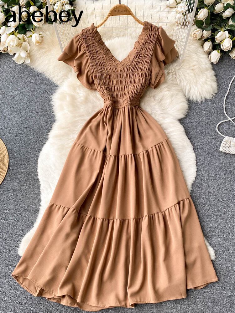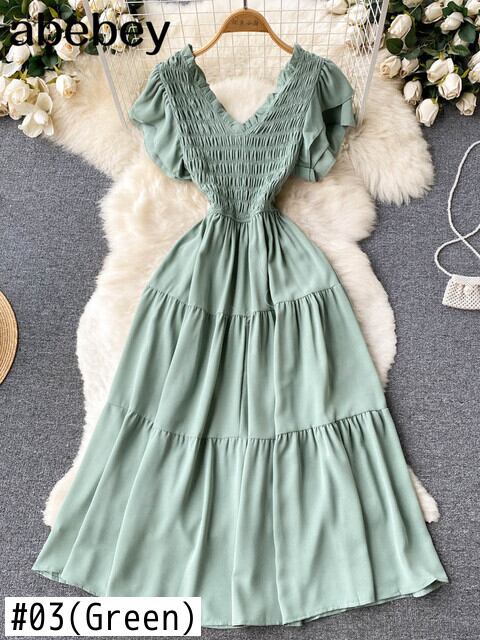 夏のライトラグジュアリーミディロングVネッククロスパーティードレスハイウエストフリルスリーブラージレースドレスエレガントな女性 ラッフル サマー 夏物 Abe9359445260
