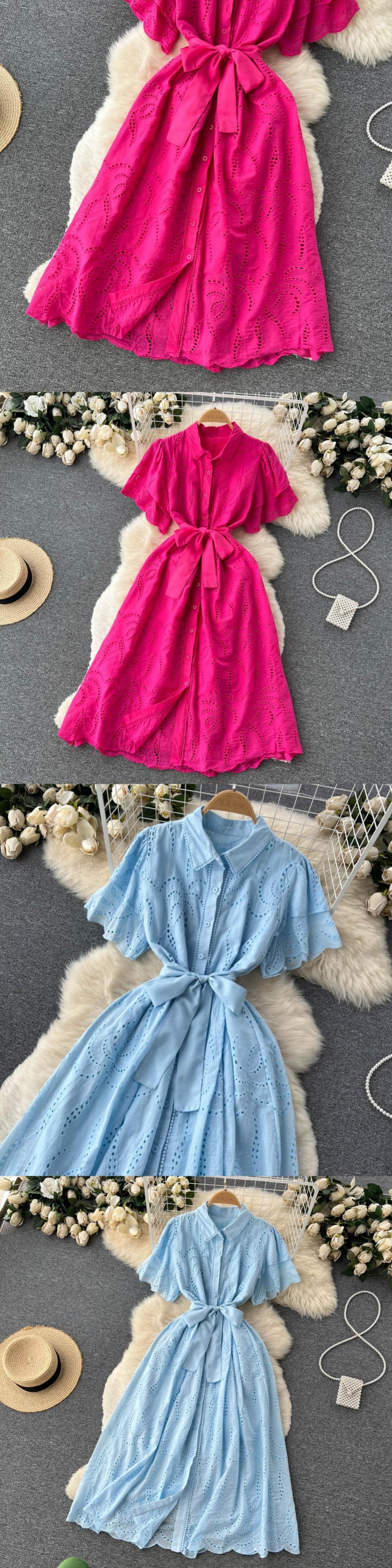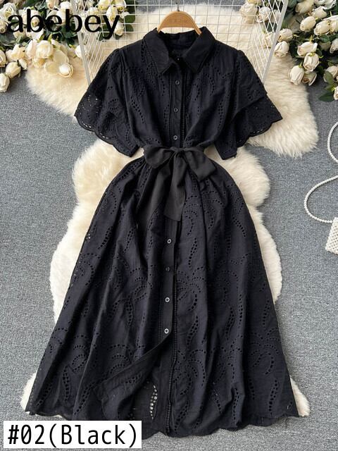 夏のセクシーな中空アウトレースロングドレス女性グリーン/ピンク/ホワイト半袖Aラインパーティーマキシローブ ショート ハーフスリーブ サマー 夏物 Abe81677548022