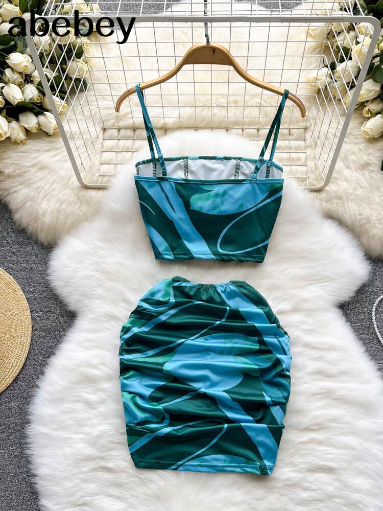 セクシーなフローラルレディース2ピースサマー衣装プリントバックストラップコルセットトップス+ミニスカートセットクラブストリート衣装 夏物 花柄 Abe42229579162