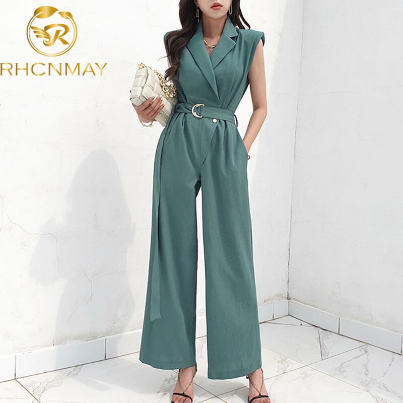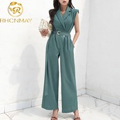 2022年春夏ノッチ付きノースリーブ気質ジャンプスーツウエストプリーツレースアップウエストワイドレッグジャンプスーツ スプリング 春物 サマー 夏物 ワイドパンツ Rhc60216448511